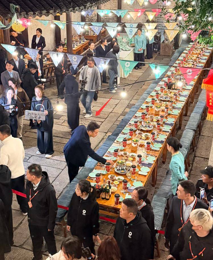 这场“长桌宴”在户外,不少普通游客都看到了在场的明星。