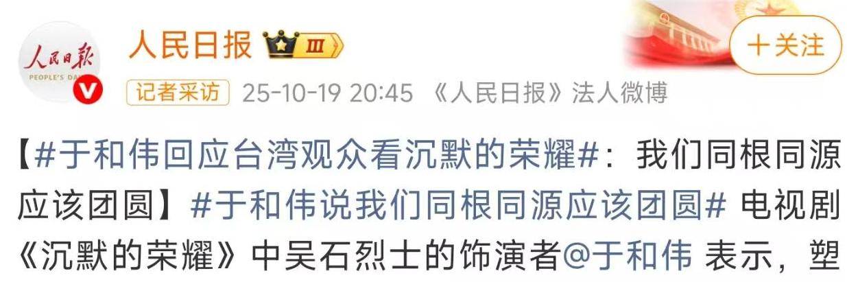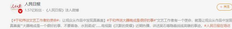 10月19日以来,《人民日报》的微博账号就像装了弹簧,72小时内为于和伟连发4条微博,这在娱乐圈是何等罕见的殊荣,简直像过年放鞭炮,一挂接着一挂!