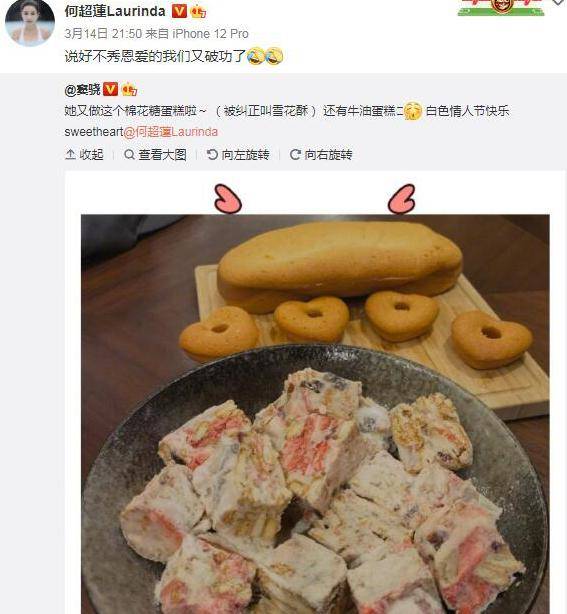 男方在微博上也经常秀恩爱,女友做的小甜点,他都要拍照片发到网上,就是让大家看一看他们有多幸福。