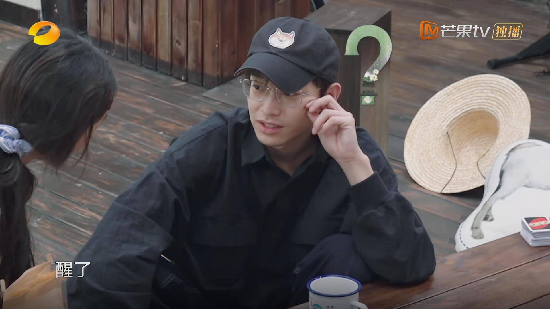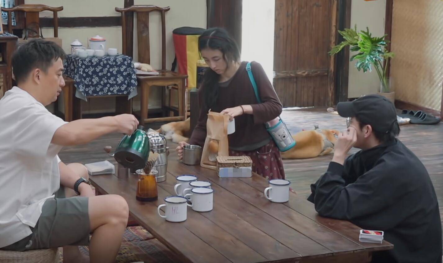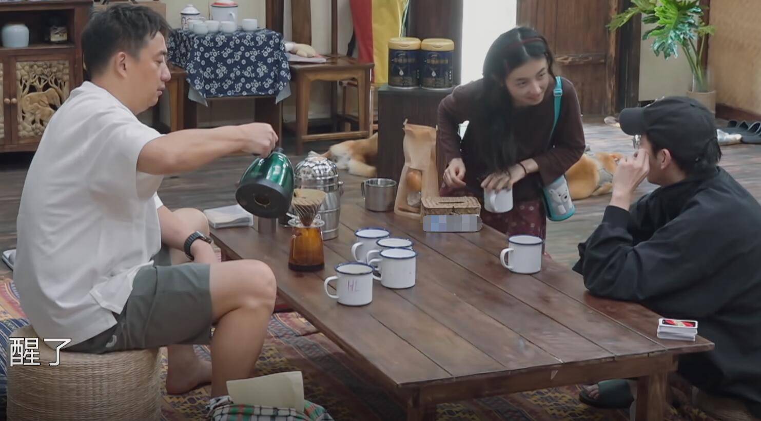 本来大家在喝酒,但节目组愣是不让观众看出来他们是喝酒。