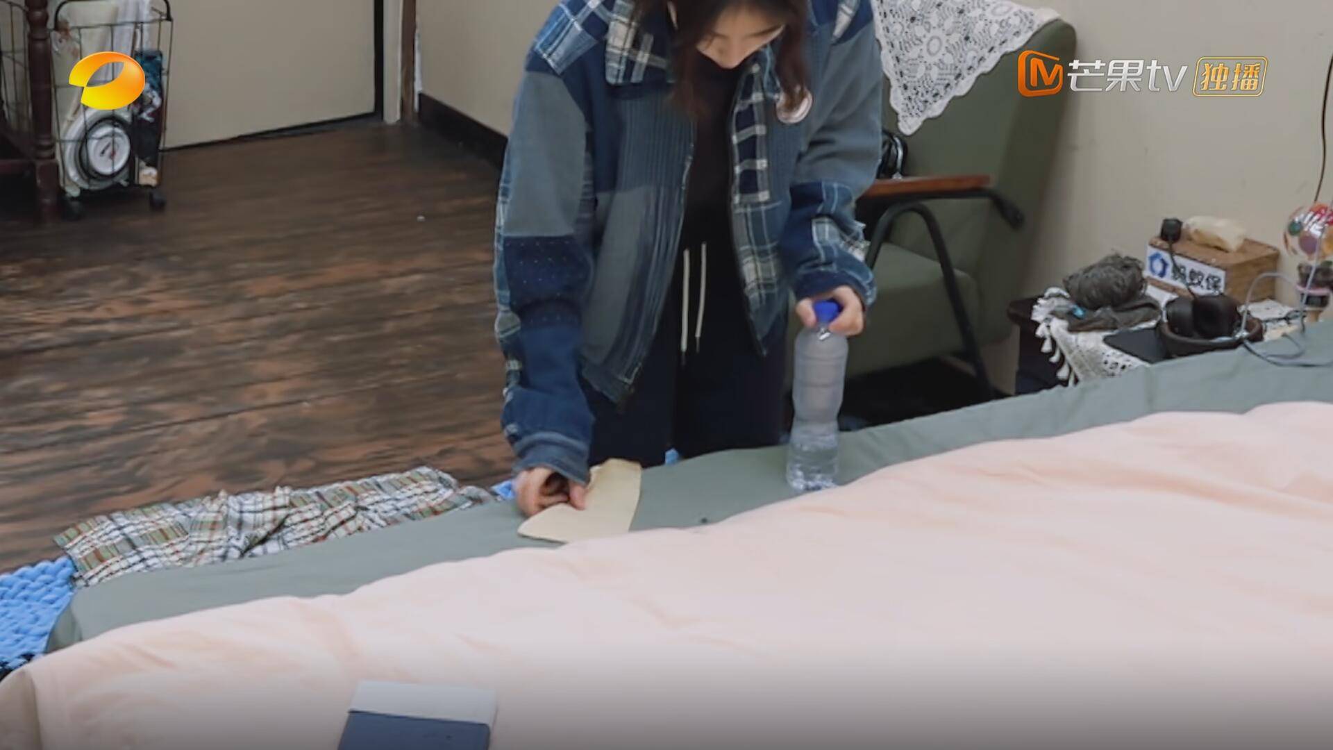 在张子枫收拾床的时候看到了一只苍蝇。
