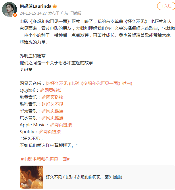 除了合照这块,生日互动、互送祝福一向也被网友视为明星cp的感情照妖镜。但去年年底窦骁过生日时,何超莲既没发祝福也没发合照,只上线给自己的新作宣传了一波。