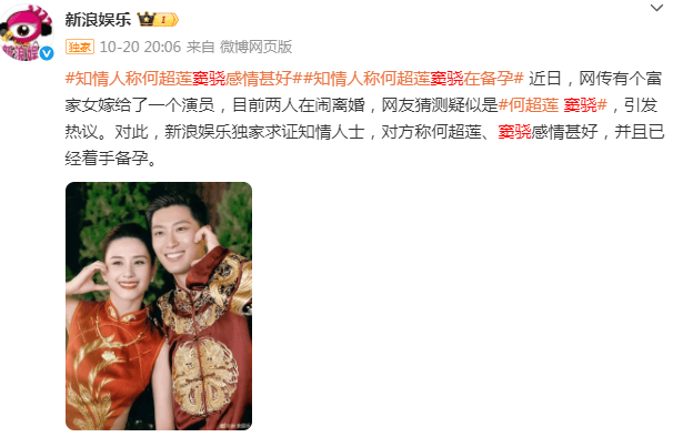 新浪娱乐还去找了知情人士求证,对方说何超莲窦骁的感情很好,并且已经在着手备孕。