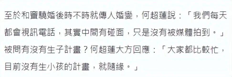 2023年9月,窦骁还帮何超莲的新店做了宣传。何超莲在活动上被记者问到婚变传闻时,也正面说过他们感情很好,每天都会打视频电话,其实中间也会见面,只是没有被媒体拍到而已。