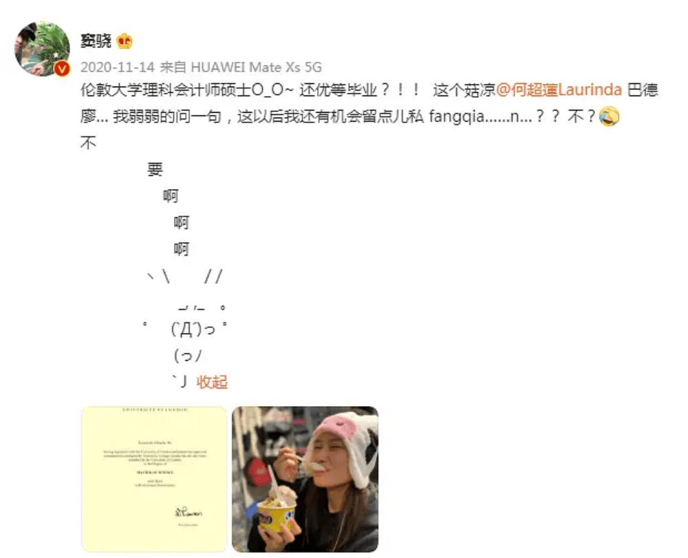 一起吃饭要记录、一起滑雪要记录、一起度假要记录、何超莲硕士毕业的时候,窦骁还会特意发微博为她庆祝,字里行间又是骄傲耍宝又是暗戳戳宣示主权的。