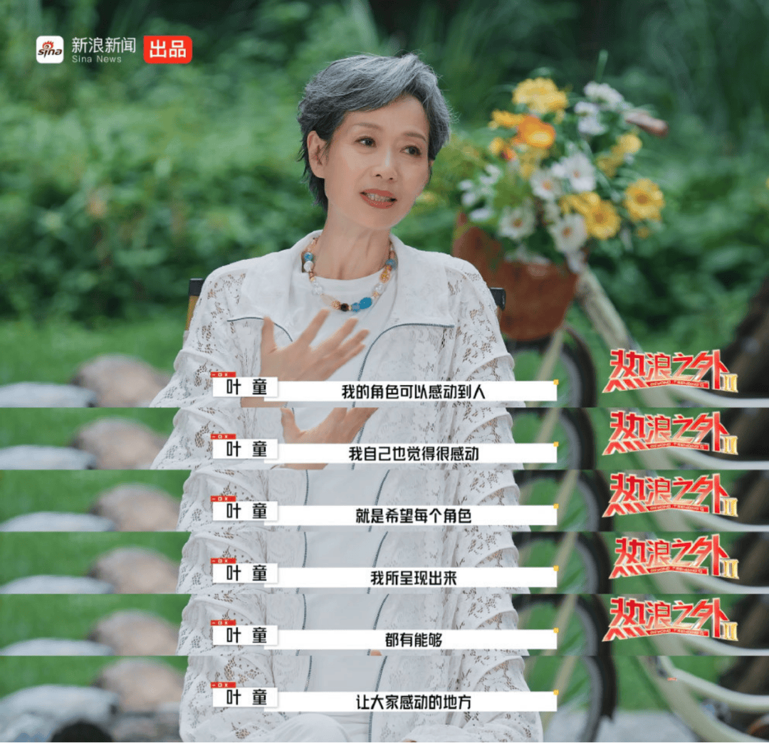 最近,叶童上了一档节目名为《热浪之外》的节目。节目里,她和鲁豫聊起美、聊起表演、聊起年龄焦虑、聊起标准时间外的广阔人生。