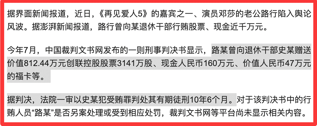 而邓莎老公行贿的事更严重,这已经不是道德问题,是触碰了法律红线。