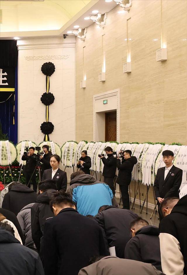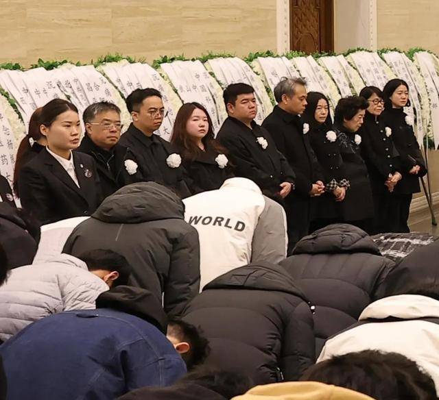 而在礼堂左侧站着一排身穿黑衣,胸前戴着白花的人,他们是杨老的亲人。