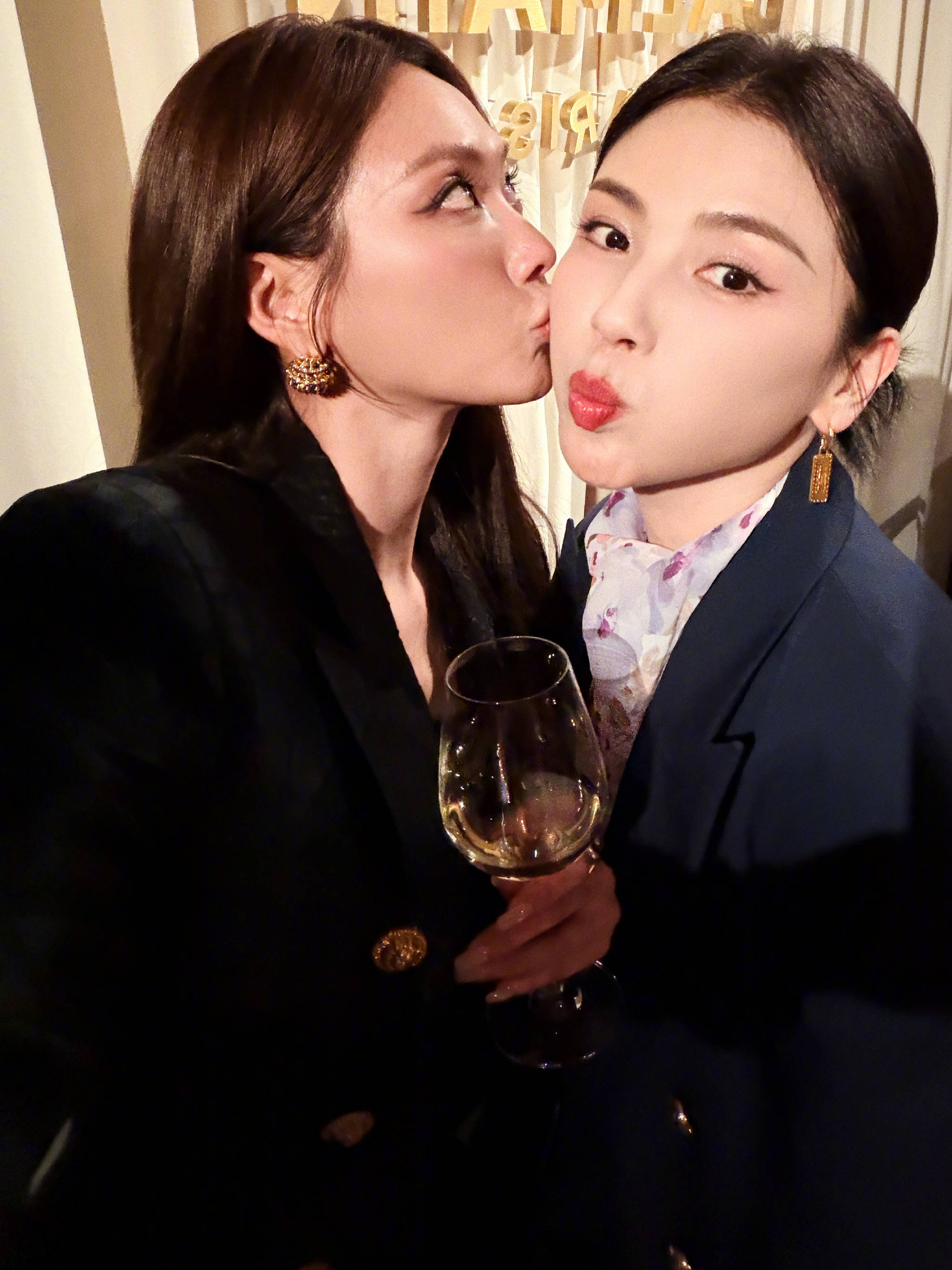 王霏霏与孟佳贴贴合影,氛围融洽。