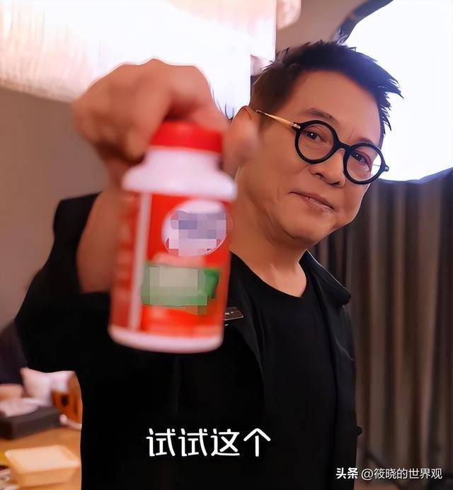 然而在卖惨三连击后,李连杰却突然举起了一瓶保健品,推销了起来。