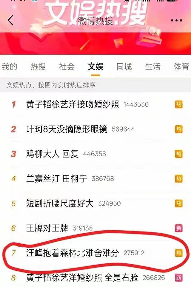 最近,#汪峰抱着森林北难舍难分#这个话题一下子冲到了热搜榜前面。