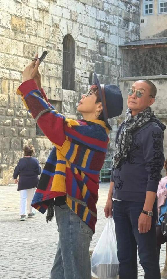 63岁吴刚巴黎度假,一身名牌比小5岁老婆时髦,23岁儿子颜值一般