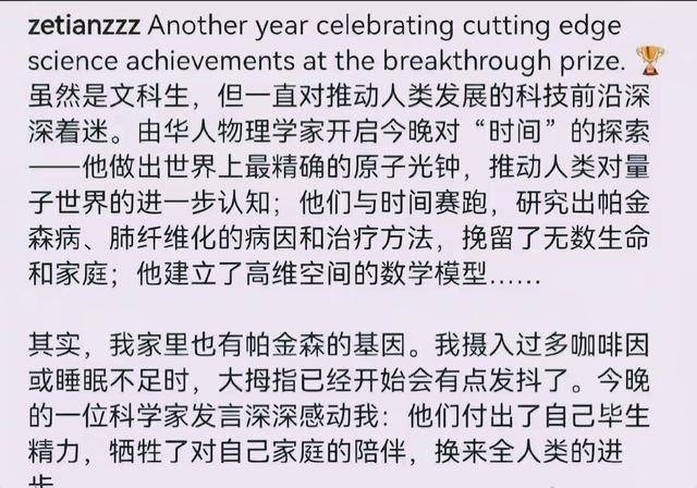 除了外形,章泽天还曾说过,家里有帕金森基因,她摄入过多咖啡因或者睡眠不足时,大拇指会发抖。