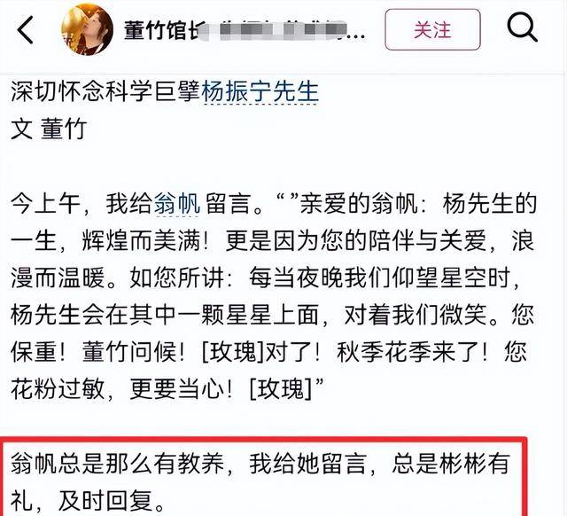 直到最近几日,之前一直与他们夫妻俩交好的董竹女士,向大众透露了一点她和翁帆的交谈记录。