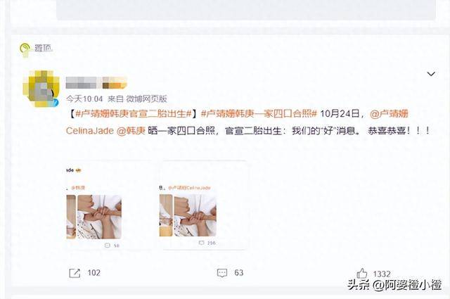 看的出来,即便是有了两个宝宝,对于韩庚来说,他还是重视卢靖姗的,照片里他紧紧地抱着妻子。