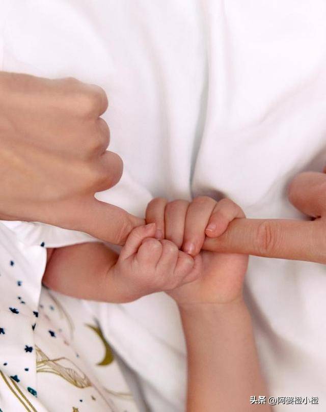 而另一张照片里,大女儿握着爸爸妈妈的手,而新生宝宝的小手则是搭在他们的手上边,能看出来一家人对这个新生命满满的爱意。