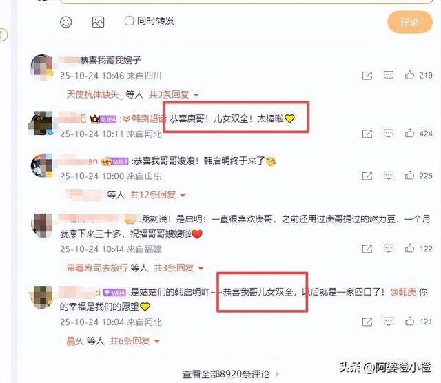 然而没想到两天后的10月24日,韩庚也官宣二胎,并且还配文,特别给“好”字加上了引号,看得出这可是精心设计的文案。