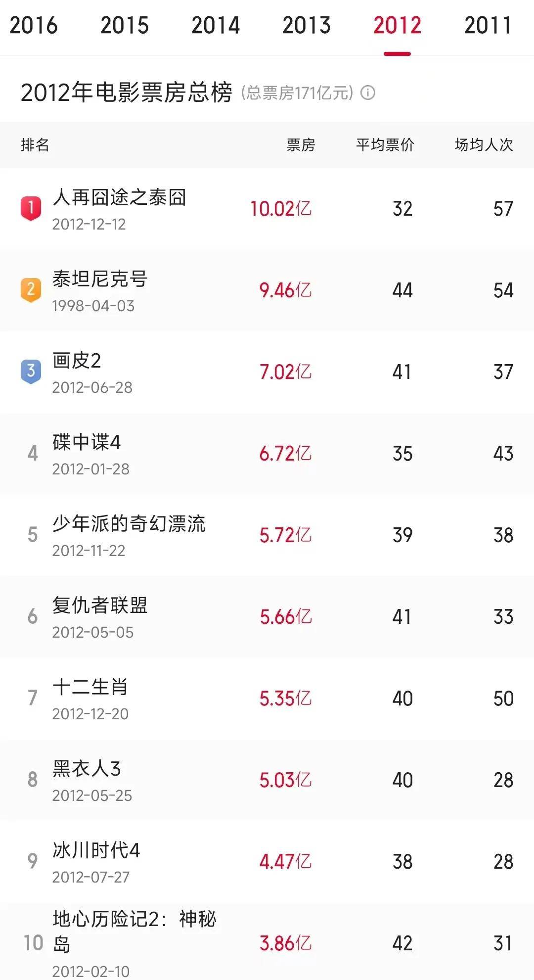 先说天花板。昔日,《泰坦尼克号》《2021》《阿凡达》《变形金刚4》《速度与激情7》们能先后登顶中国影史票房冠军,《复仇者联盟4》能斩获超42.5亿票房,爆米花大片、超英大片能轻松达到10亿+、20亿+票房量级;而2023年和2024年内地票房最高的好莱坞电影《速度与激情10》和《哥斯拉大战金刚2》,票房却仅有9.84亿和9.56亿。