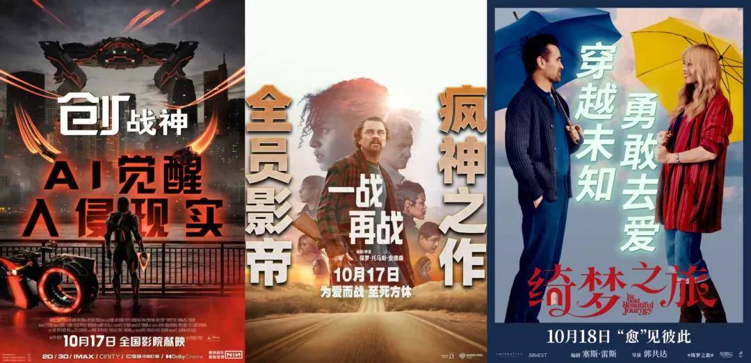上周,《一战再战》《创:战神》和《绮梦之旅》三部分别来自迪士尼、华纳兄弟和索尼的好莱坞分账电影同期引进公映。