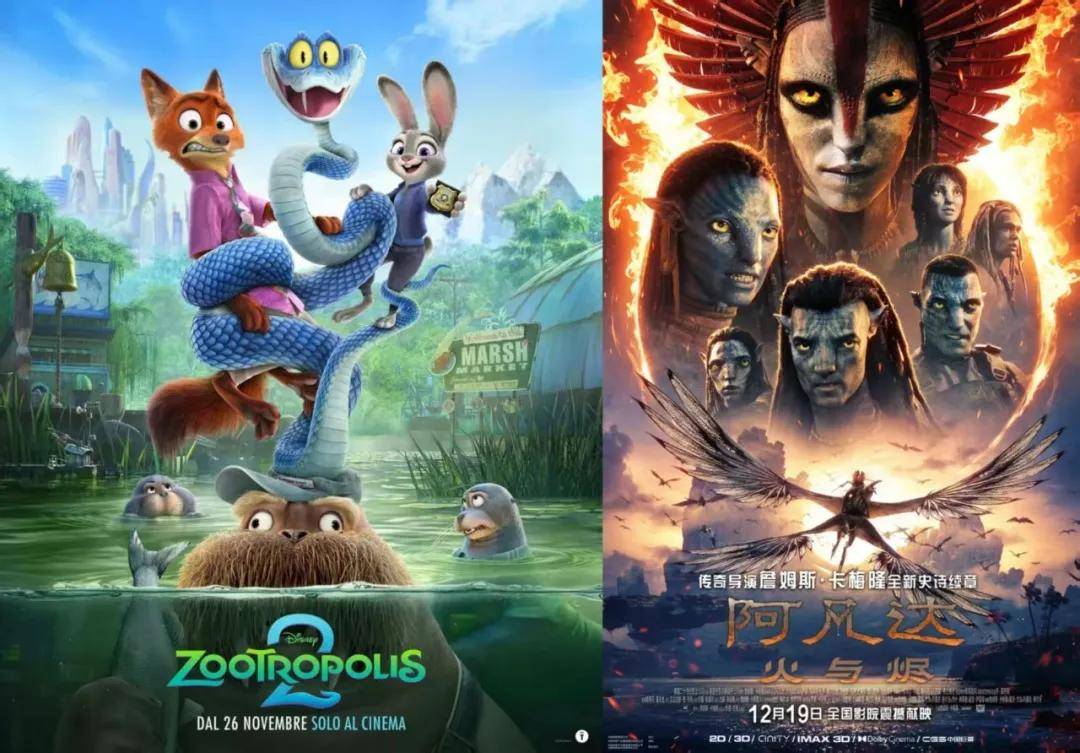 但衰落大趋势下,也有出现反弹回暖的契机。未来两个月,《疯狂动物城2》(11月26日)、《阿凡达:火之烬》(12月19日)两部理论上最有可能突破好莱坞10亿天花板的超级IP续作,将同步北美在中国内地上映。