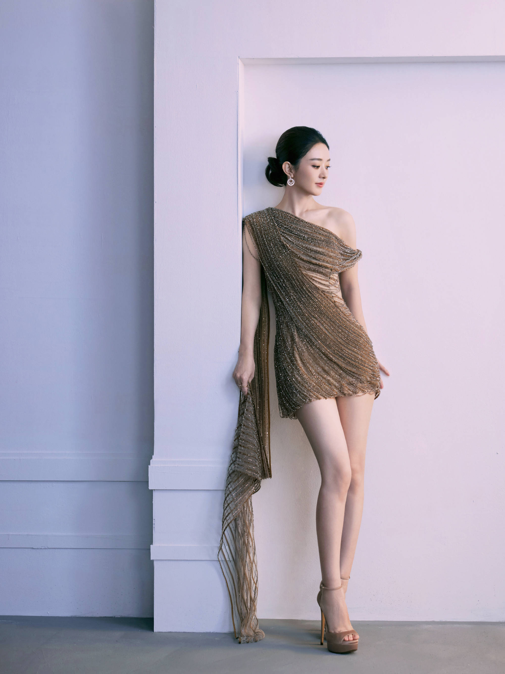 赵丽颖身材纤瘦有型,一双修长美腿吸睛。
