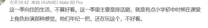 尽管如此,《向往的生活》第七季的收视率依旧在0.2%上下徘徊,并未显著回升。此时,关于这一季是否真如评论所言“糟糕”的争论仍在继续,喜欢和不喜欢的人都有自己的理由支持。喜爱这一季的观众则认为那些不喜欢的网友不过是未能理解节目背后的深意,甚至在嘲笑不理解的观众时表达出自信,认为这些人对节目的看法缺乏洞察力。