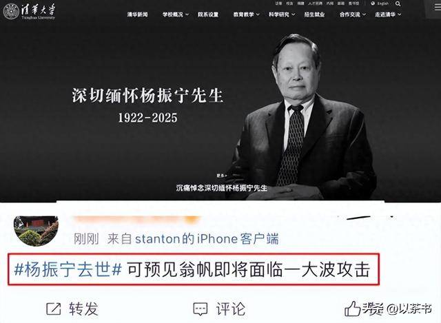 翁帆没有多言,只是微微点头,目光落在那张遗照上,杨振宁的笑容一如往常,温和而坚定。
