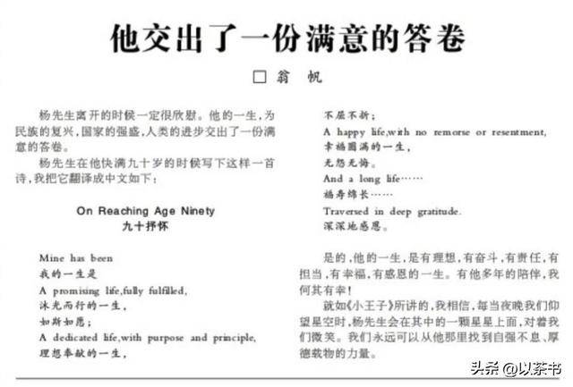 翁帆在悼文里写,杨振宁的一生,为民族复兴交了“满意答卷”。
