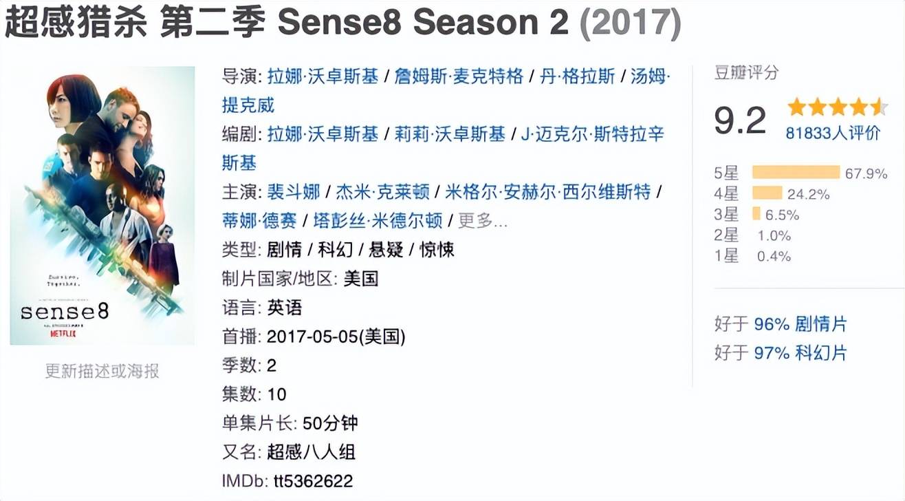 《超感猎杀》播出两季被砍,全球粉丝直接炸锅,结果Netflix最后妥协了,拍了一部151分钟的《超感猎杀:完结特别篇》,让故事得到了收尾。