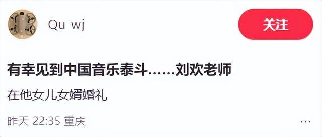 虽然不知道新郎的真实身份,但从刘欢夫妻的态度就能看出,新郎的人品一定很不错,要不然他们也不会同意将宝贝女儿嫁出去。