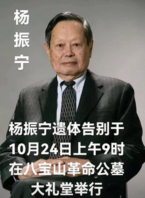 10月24日,杨振宁的追悼会将在北京八宝山革命公墓大礼堂举行。