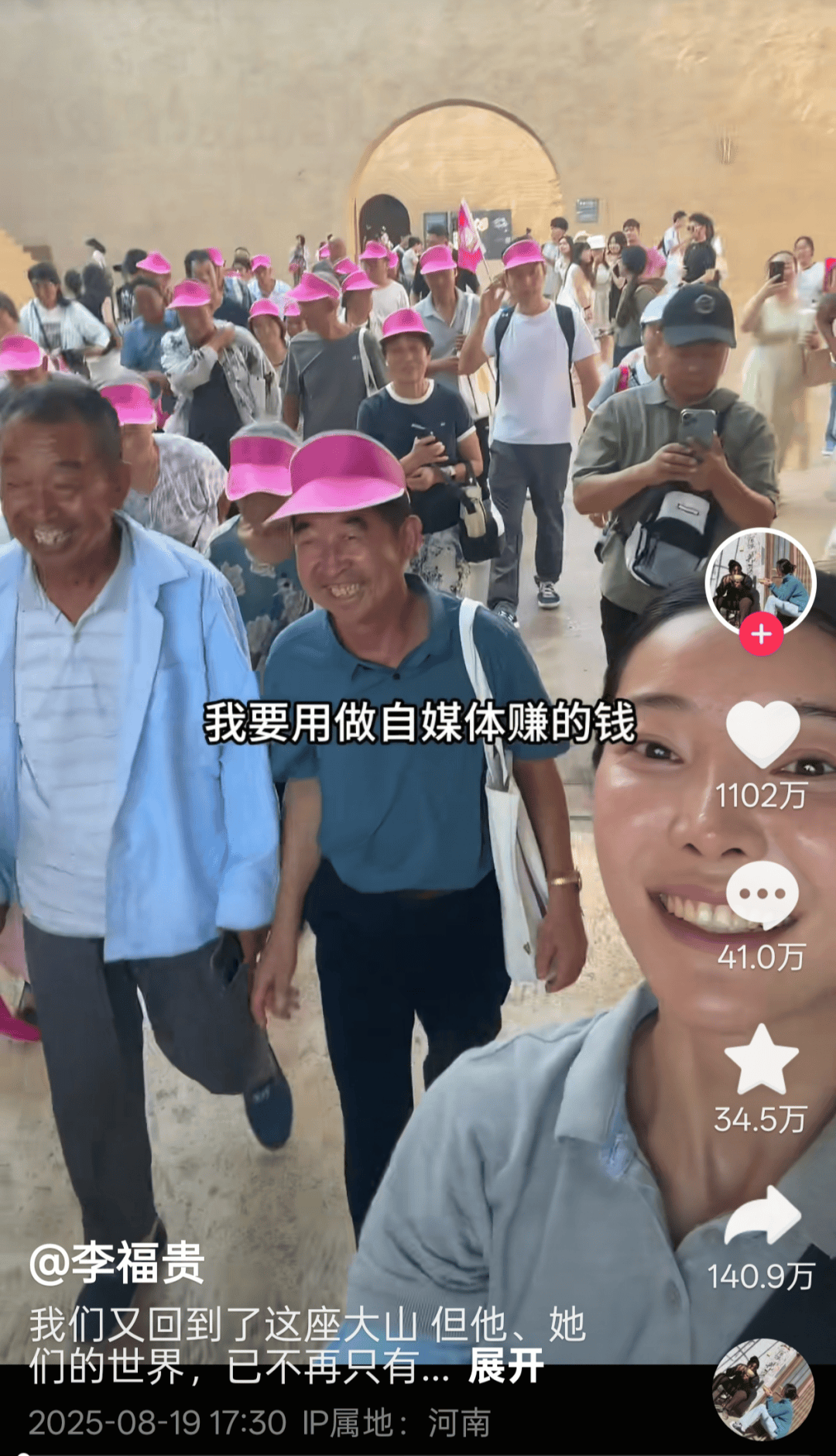 但是,李福贵爆火后,并不急于走上直播带货这条快速变现的道路,而是用实际行动回馈乡村父老,用做自媒体赚来的钱带着46位农村老人去旅游。这一举动,也赢得了大众的认可和支持。