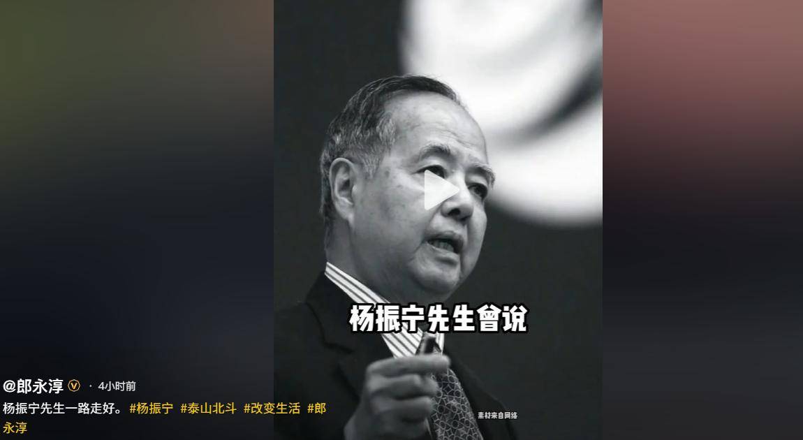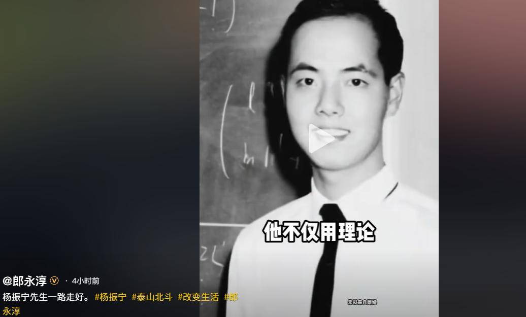 央视主持人郎永淳还专程发布一段视频纪念杨振宁,讲述他过往的一生。