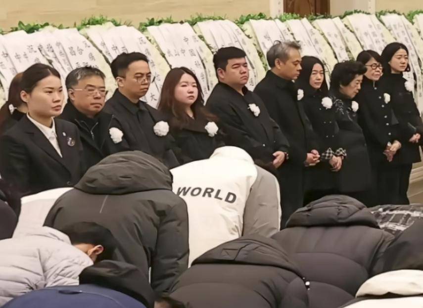 杨振宁的追悼会如期举行,追悼会内场放满各界人士送的挽联,来宾们都穿上黑白灰色服装,面色沉重,深深的弓下腰,为杨振宁送行。