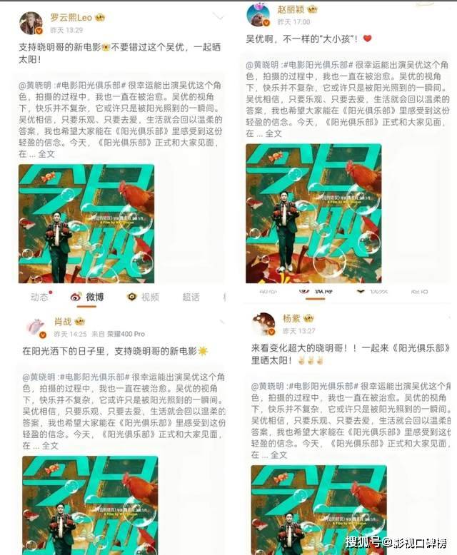 面对票房失利,粉丝和片方将原因归结于宣发不力。黄晓明为《阳光俱乐部》的宣发是甩开老脸了,发动娱乐圈的诸位顶流好友,肖战、赵丽颖、刘亦菲等人在社交媒体上轮番造势,相关话题阅读量轻松过亿。甚至还打出了亲情牌,放出儿子小海绵探班的温馨视频,试图拉动关注。