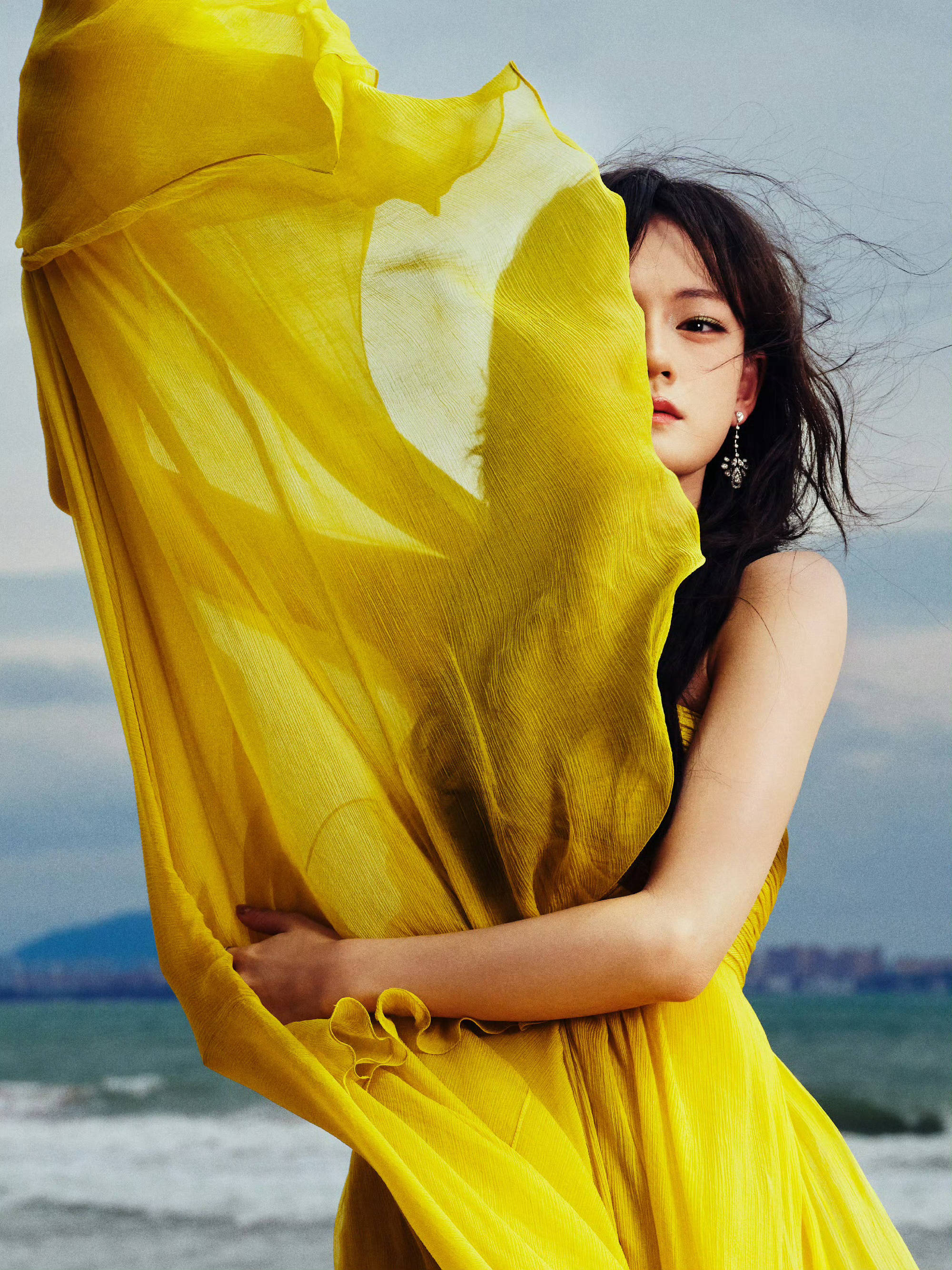 搜狐娱乐讯 近日,文淇的一组盛典造型释出。图中,文淇一身明黄色抹胸纱裙,发丝飘逸,眼神灵动。