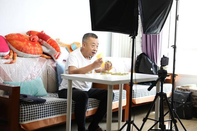 结巴老爹在家中拍摄品尝美食的短视频。新华社记者 姚剑锋 摄