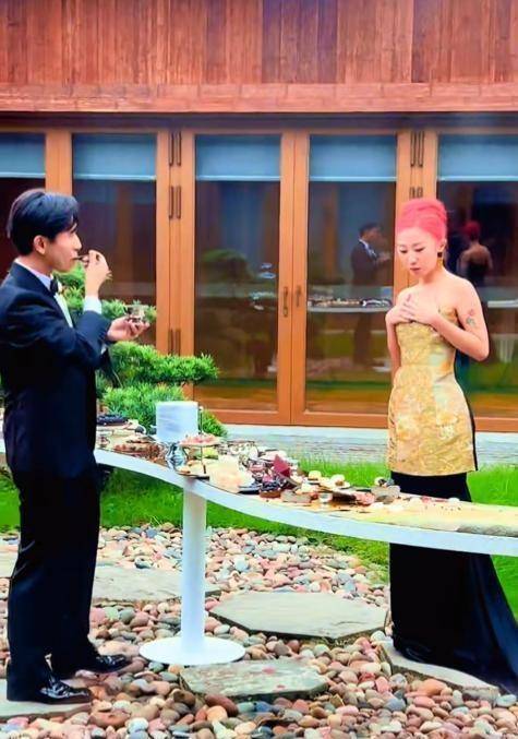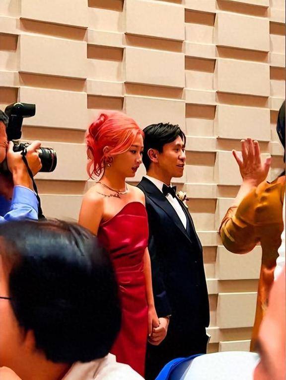 画面里,新娘刘一丝一头亮眼的红发特别个性,她妈妈卢璐穿得也特别喜庆,至于新郎,既帅又贴心,真让宾客们记忆犹新。