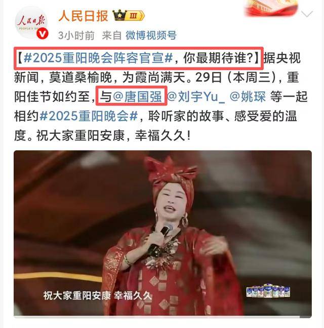 在前不久官宣的重阳节特别晚会名单中,他成为“霞光号”列车故事环节的主角之一,与陶慧敏、迟蓬等资深艺术家同台讲述老年群体的情感与温度。
