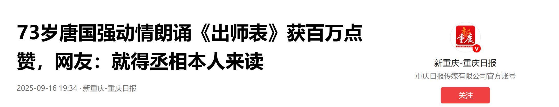 有人说,唐国强把《出师表》读成了遗书,也读成了千年忠魂。