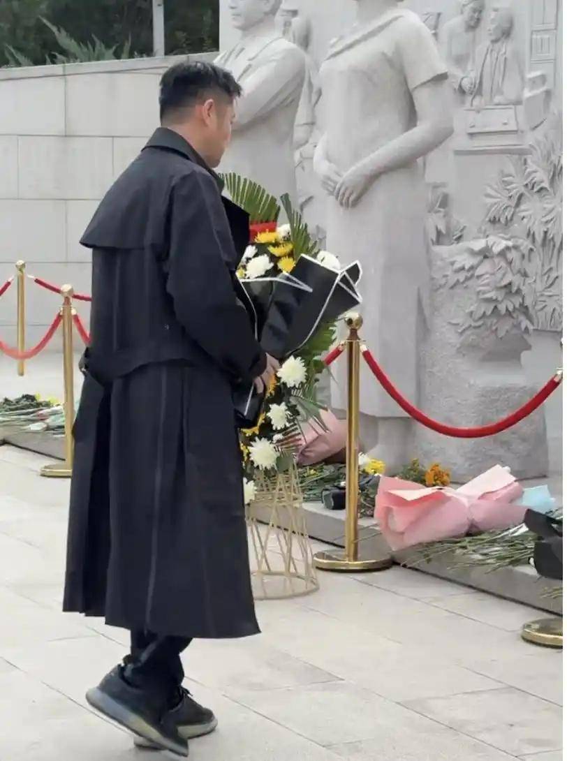 作为正在热播的革命历史剧《沉默的荣耀》主演,巩峥在剧中饰演地下情报成员万景光,该剧以四位烈士的真实事迹为原型,是国内首部聚焦台湾隐蔽战线斗争的作品。当日他身着深色正装,神情肃穆地将四束白菊分别摆在雕像前,深深鞠躬后绕纪念碑缓步前行,指尖轻轻拂过刻有烈士英名的石壁,静静诵读碑文的模样被镜头记录下来。