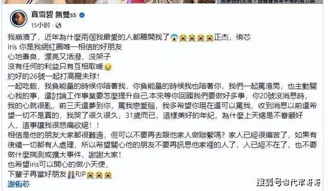 雪碧在文中称,谢侑芯是她在网红圈唯一的朋友,她心地善良、漂亮又活泼,毫无架子,两人之间没有任何利益纠葛,只有相互温暖和扶持 。她还透露,原本两人约好了 10 月 26 号一起去打高尔夫球,可没想到,这个约定竟成了永远无法实现的遗憾 。字里行间,满是对谢侑芯的不舍和怀念,让人看了为之动容。