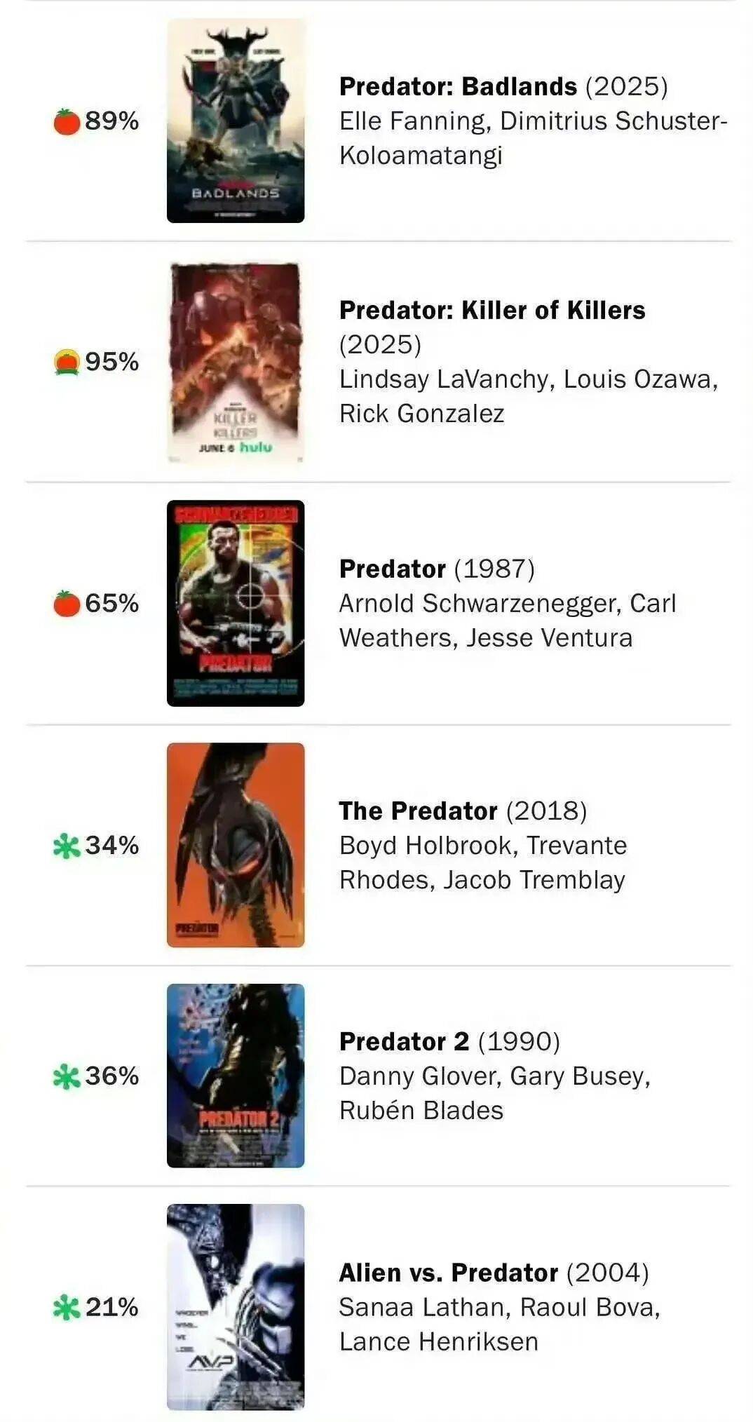 《铁血战士:杀戮之地》果然是经典力作!全片节奏紧凑,打斗密集且创意绝佳,各种外星怪兽与机器人脑洞大开,对强大力量的寓意更是深刻!