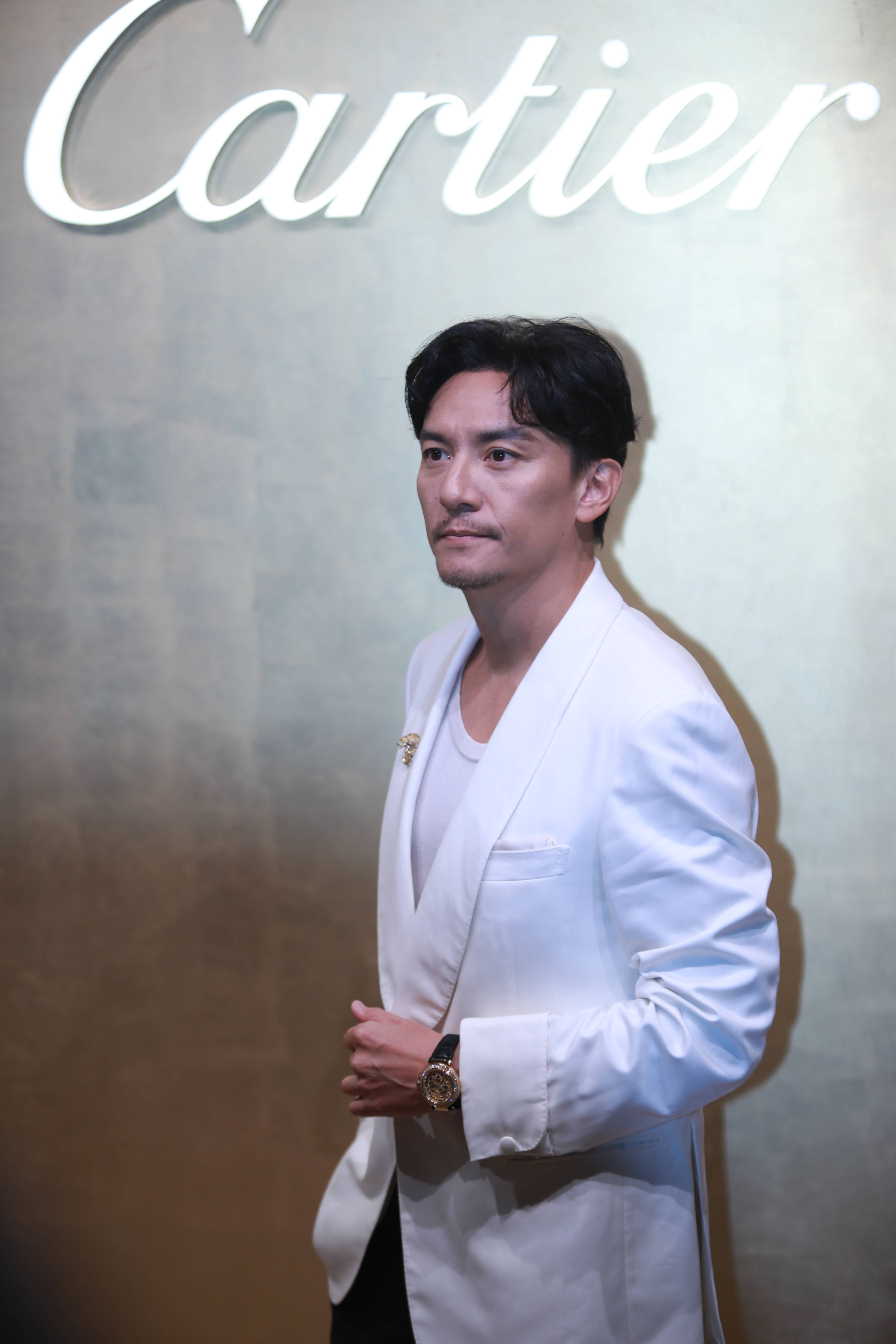 张震一身白色西服,实力演绎“法拉利老了还是法拉利”。