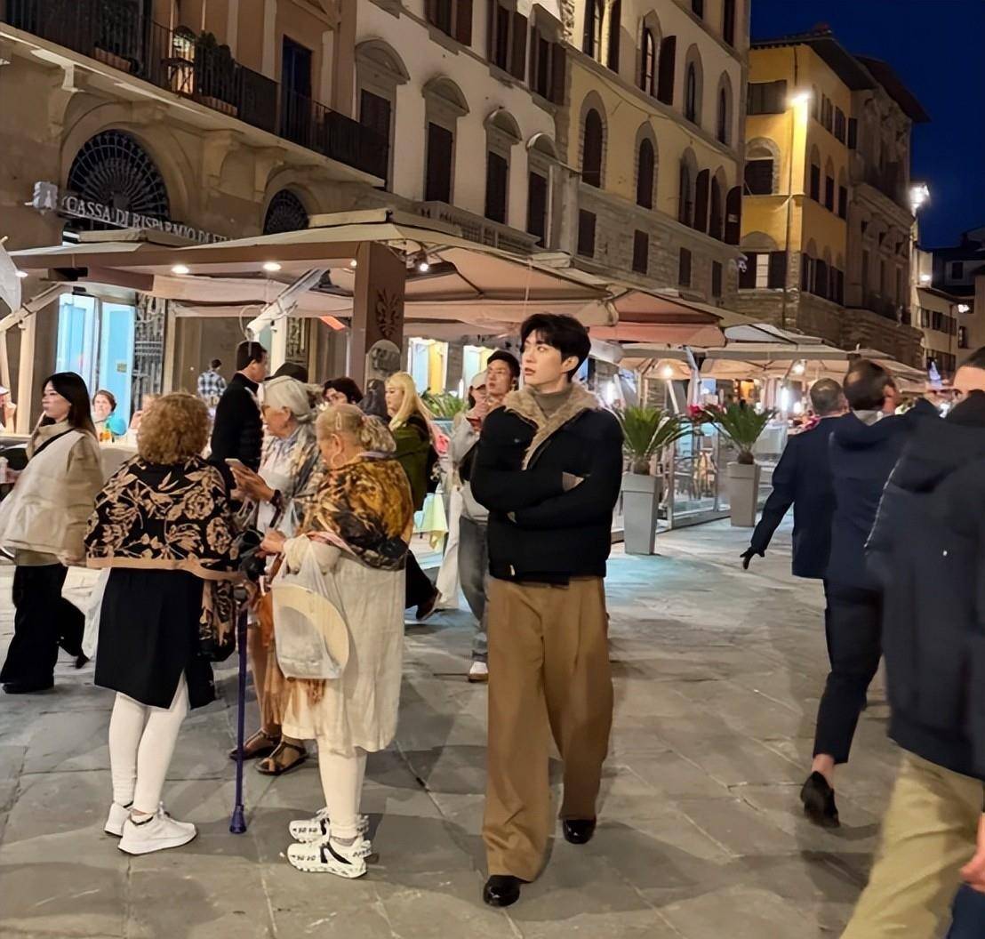 他走在佛罗伦萨街头,仿佛将这里变成了专属秀场。高领毛衣搭配黑色马甲,将他的身形衬托得格外优越,侧脸线条干净利落。