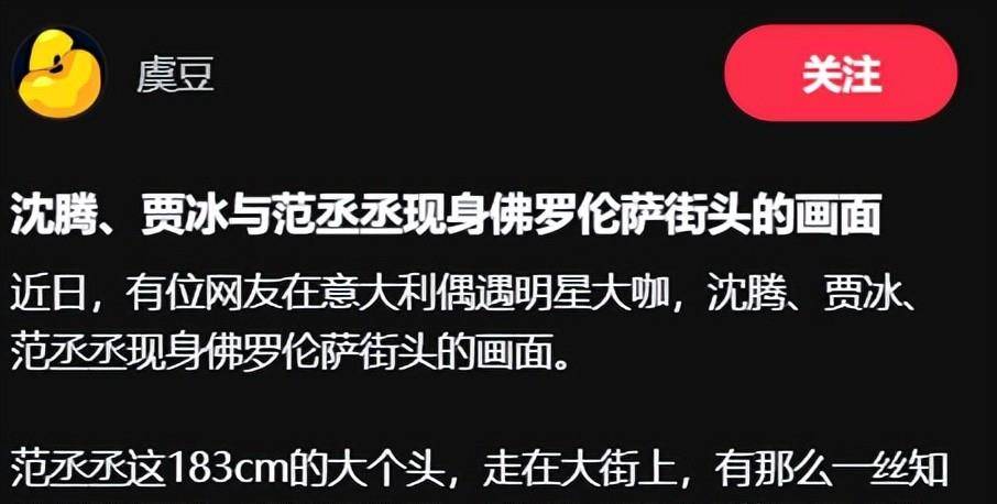 以往出现在镜头前的沈腾,总会打理得干净利落。但这次在佛罗伦萨街头,他却以一副随性到近乎“放飞自我”的形象出现。