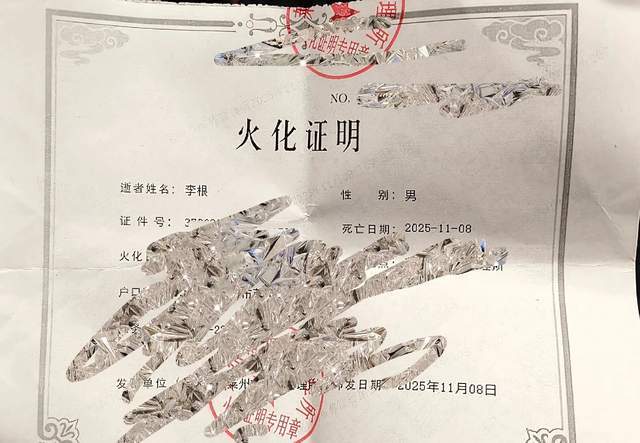 有一位自称其外甥媳妇的网友分享了多张现场照,包括火化证明,以及烧衣服的场景。