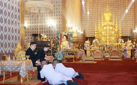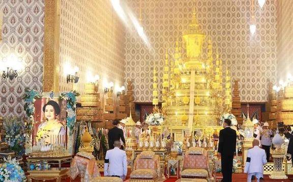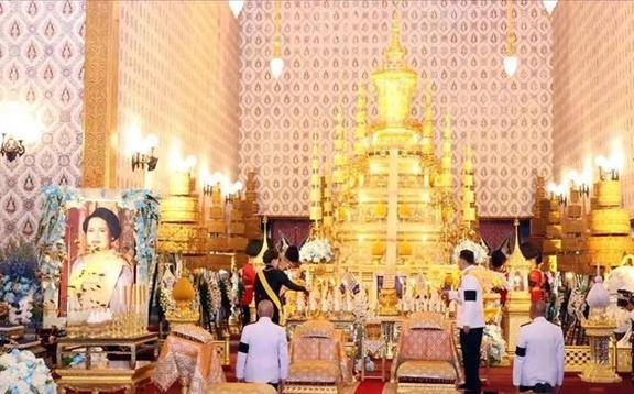 泰国的王太后诗丽吉去世后,到了葬礼的第十天,泰王就带着后宫的人在大皇宫举行了祭奠仪式。