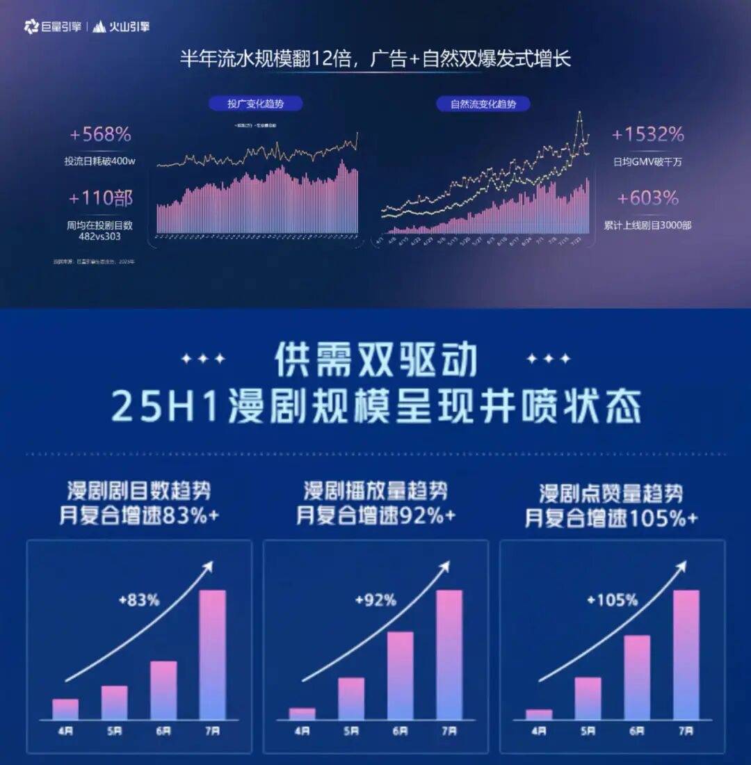 首先各平台的海量内容IP,使得漫剧的发展有了土壤,其次就是AI带来的技术突破,进一步释放了漫剧的商业价值与产能。AI技术今年的发展突飞猛进。国外以Sora2为代表、国内以字节跳动的即梦和快手的可灵为代表,都取得了长足进步。有了IP的供给,有了趁手的工具,于是漫剧如今已势不可挡,在2025年上半年累计上线3000部,复合增长率高达83%。