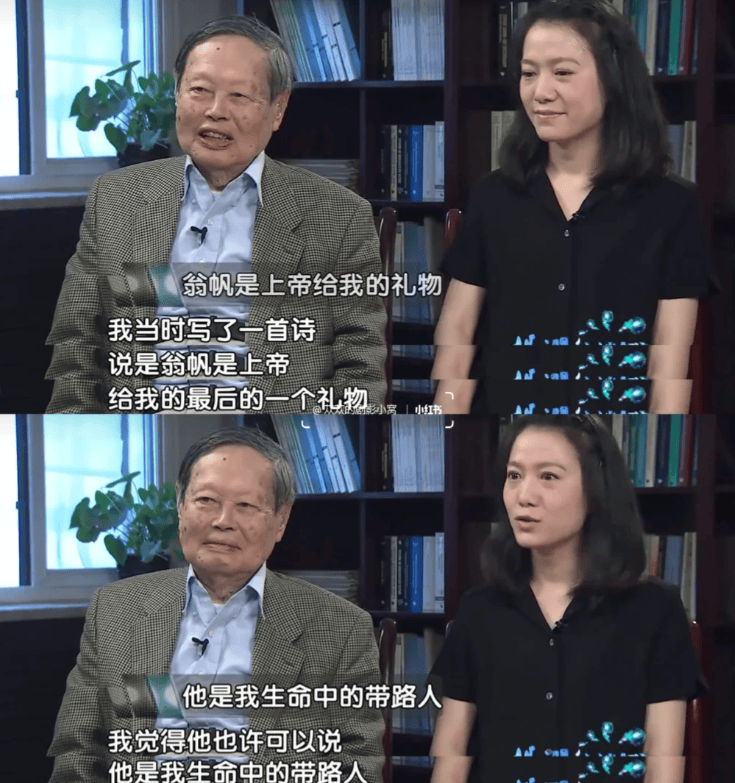 感觉他们陪伴的这些年应该是很温馨的,翁帆说很感谢杨老让她能一直活在象牙塔里,我觉得是发自内心的说的。杨老是很有分寸和礼数的。